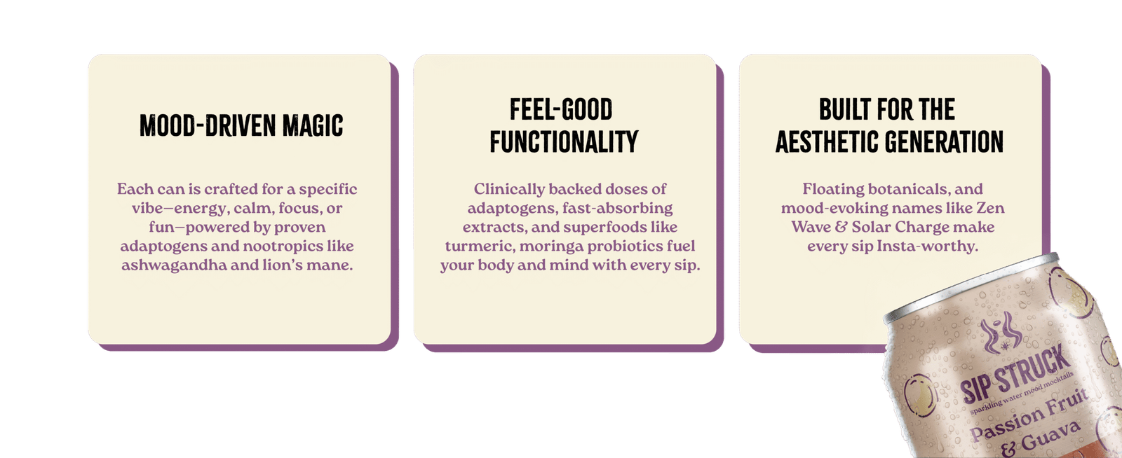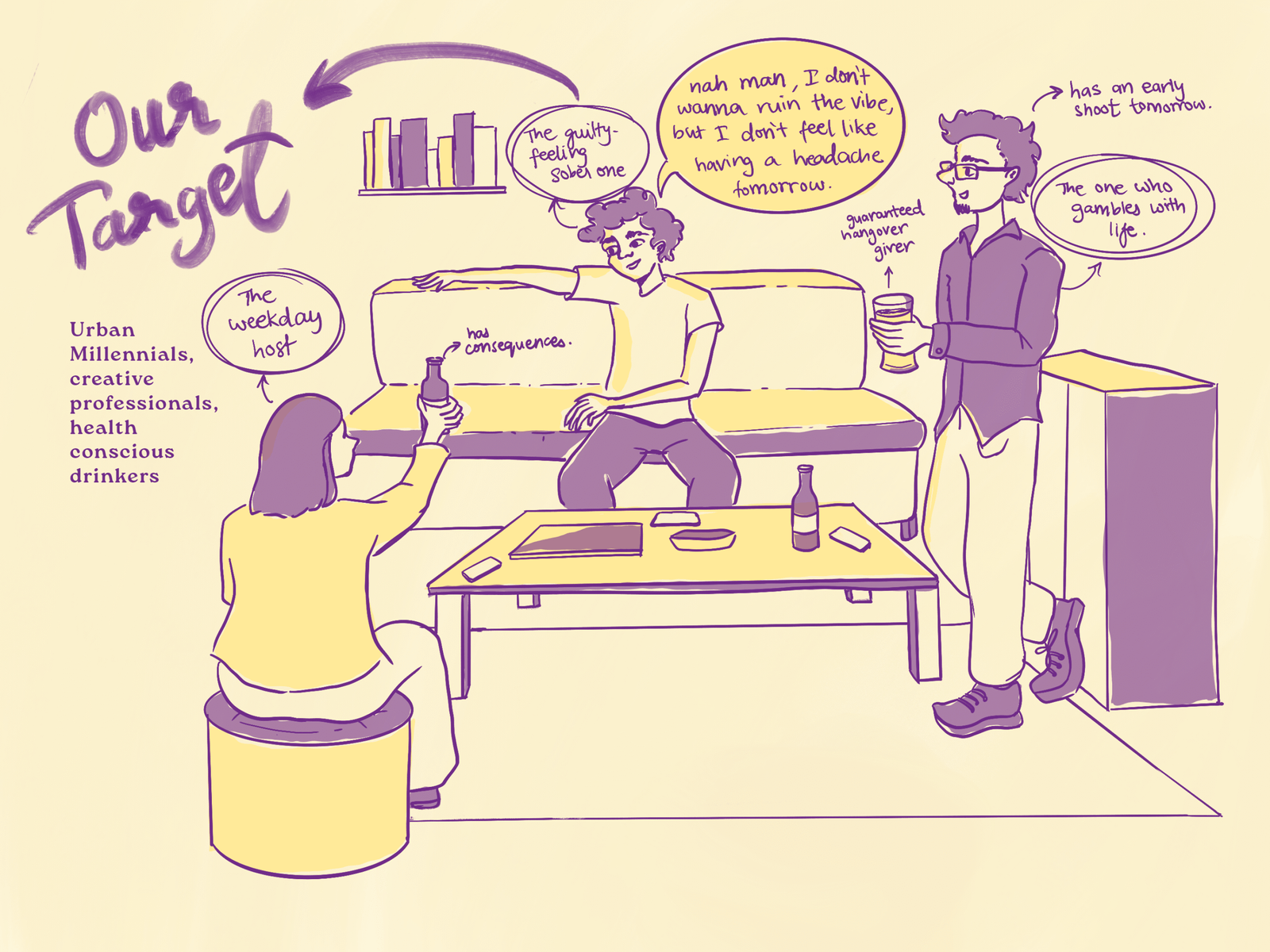 A functional mocktail brand for urban millennials. Made for letting loose without consequences!